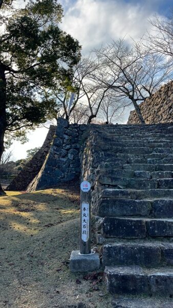 天守閣の足元へ、なんか中に入るための階段の敷石みたいなのはあるんですが